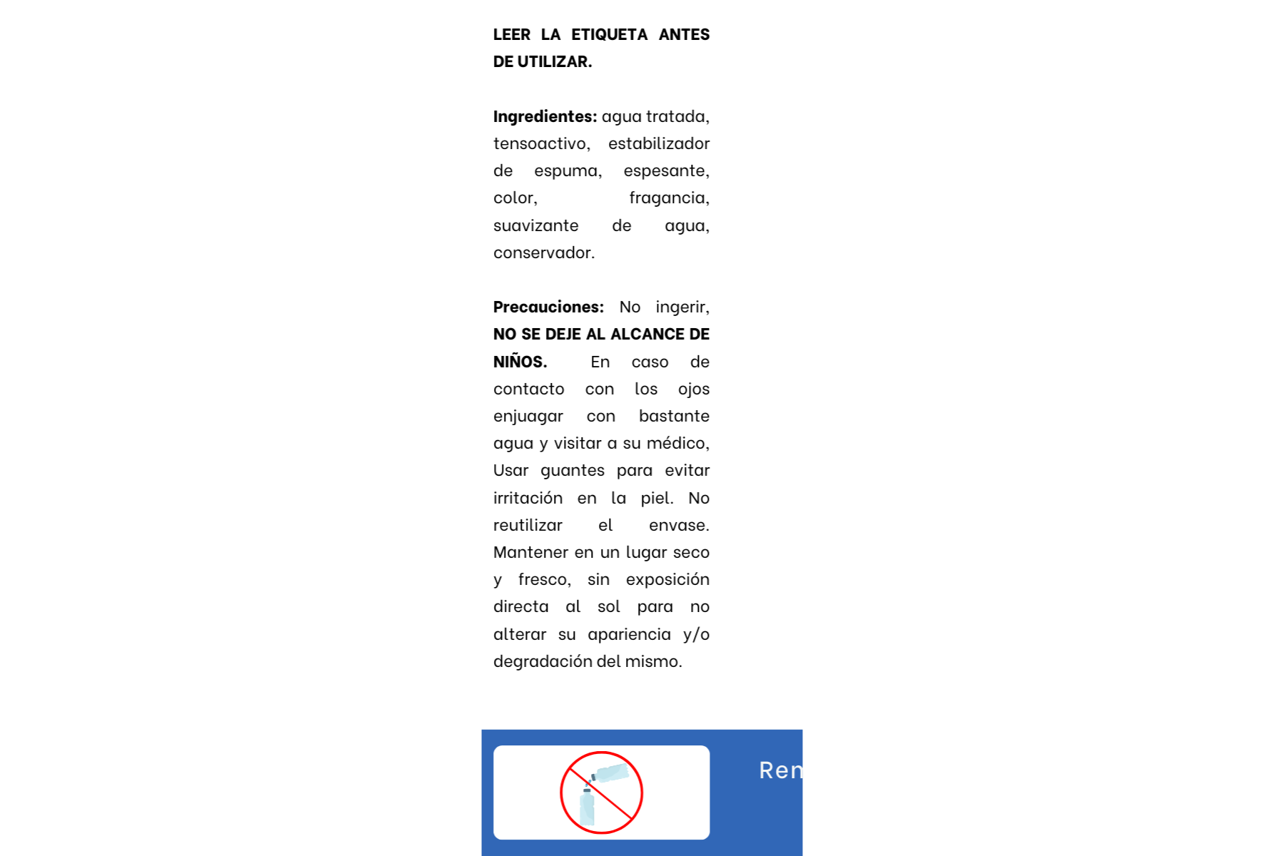- No mezclar con otros productos de limpieza ya que se pueden producir gases tóxicos.