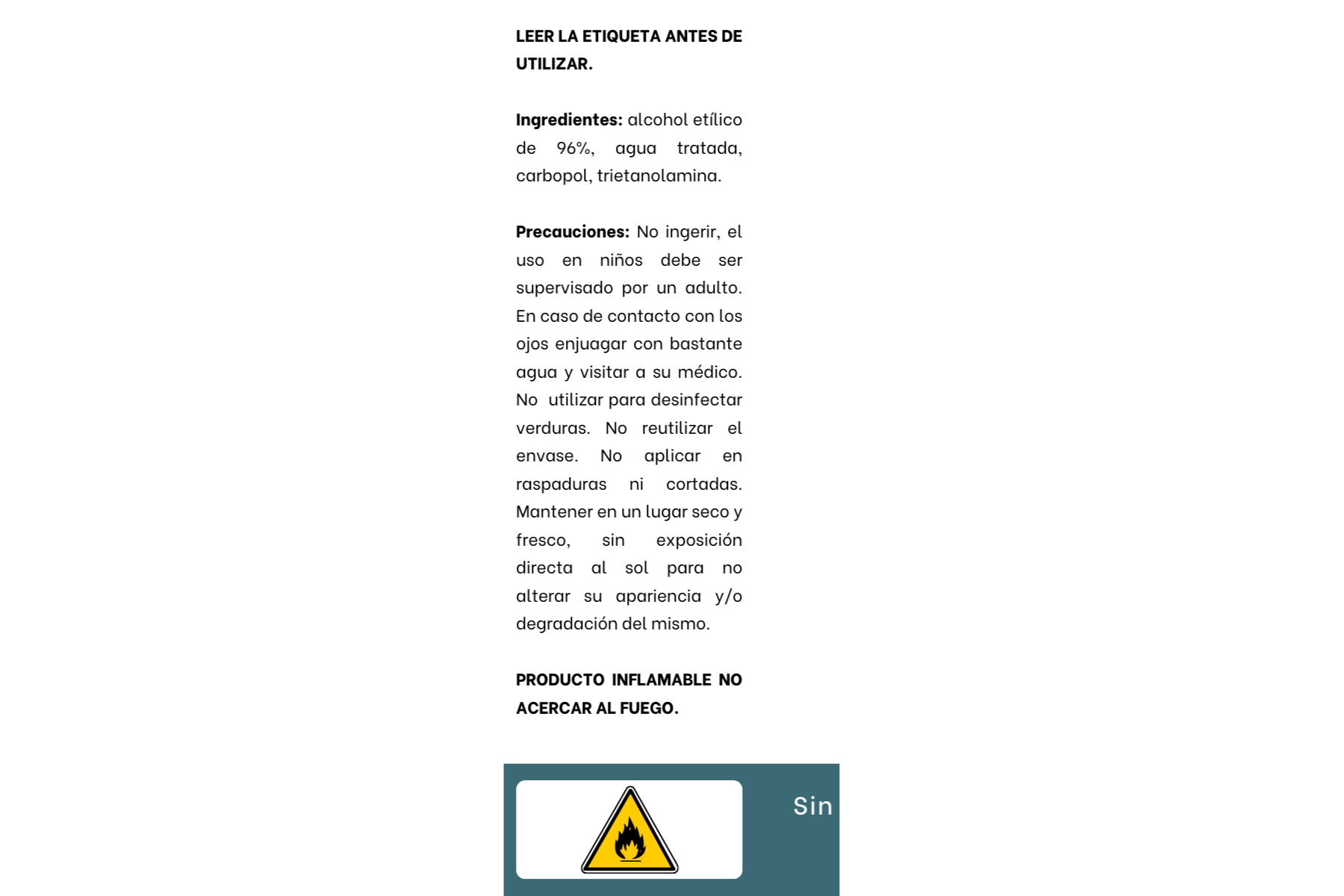 - Producto inflamable, no acercar al fuego.
