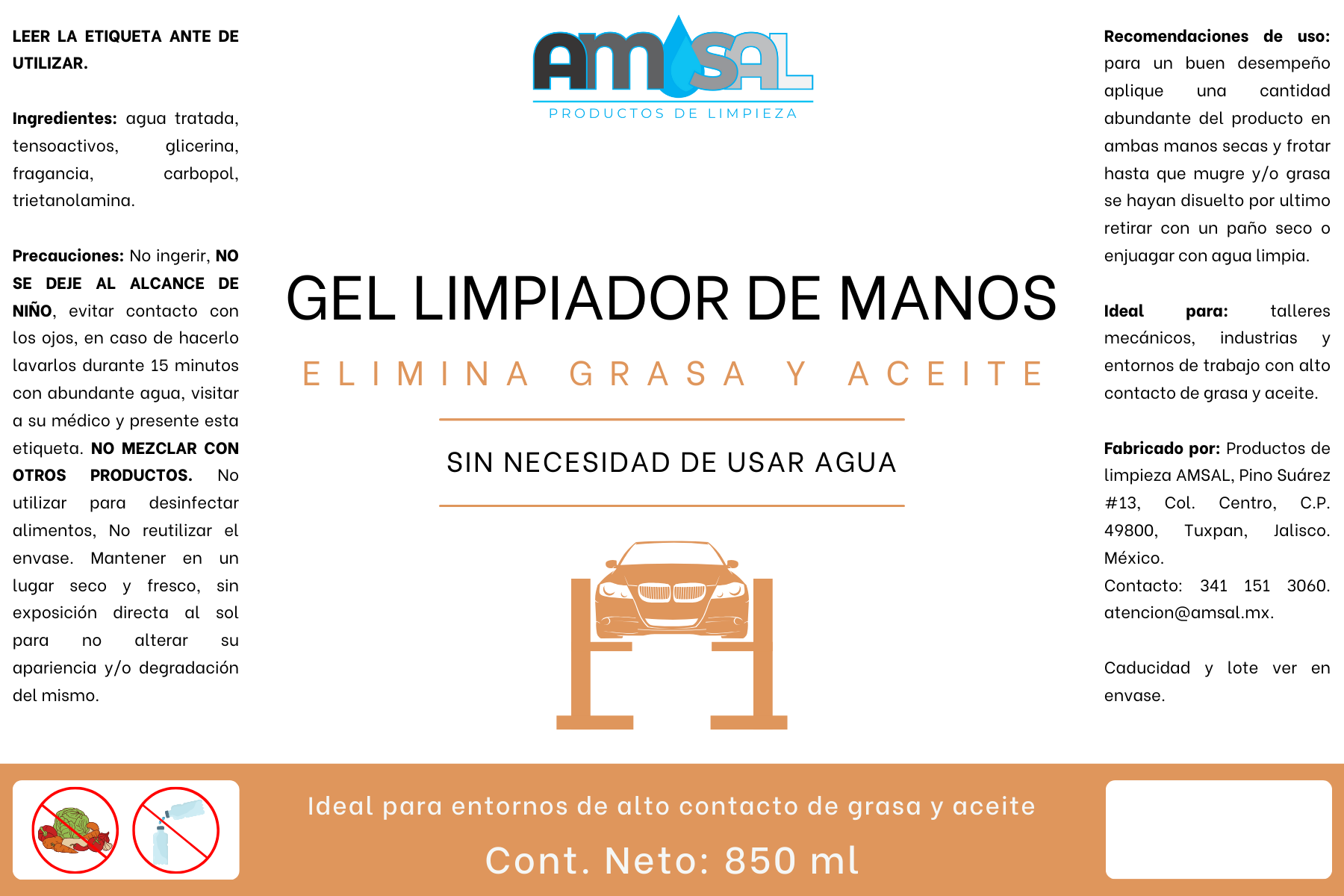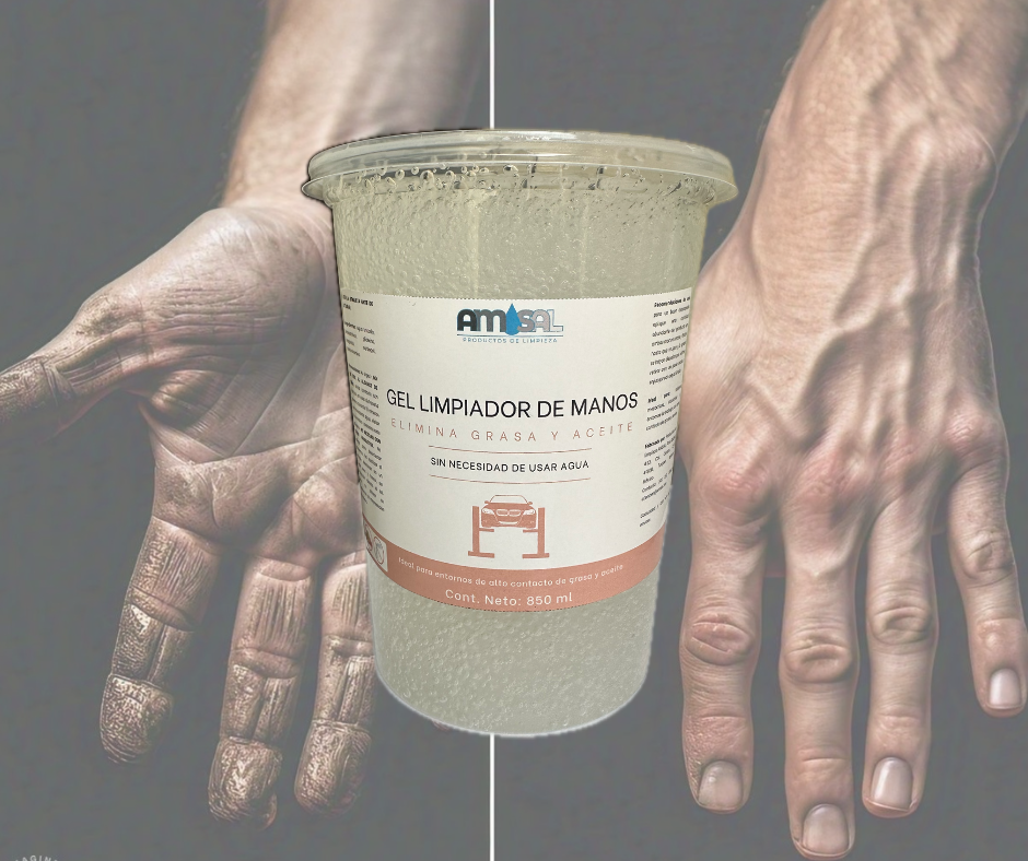 El gel limpiador de manos es ideal para eliminar grasa y aceite mecánico es un producto especializado y diseñado para eliminar de manera efectiva las sustancias mas difíciles, como grasa, aceite y otros residuos mecánicos, sin dañar la piel. Formulado con poderosos agentes limpiadores y exfoliantes suaves, este gel es ideal para quienes trabajan en entornos industriales, talleres automotrices, o cualquier otro lugar donde las manos estén en contacto con suciedad persistente. A pesar de su poder de limpieza, nuestro gel es respetuoso con la piel.