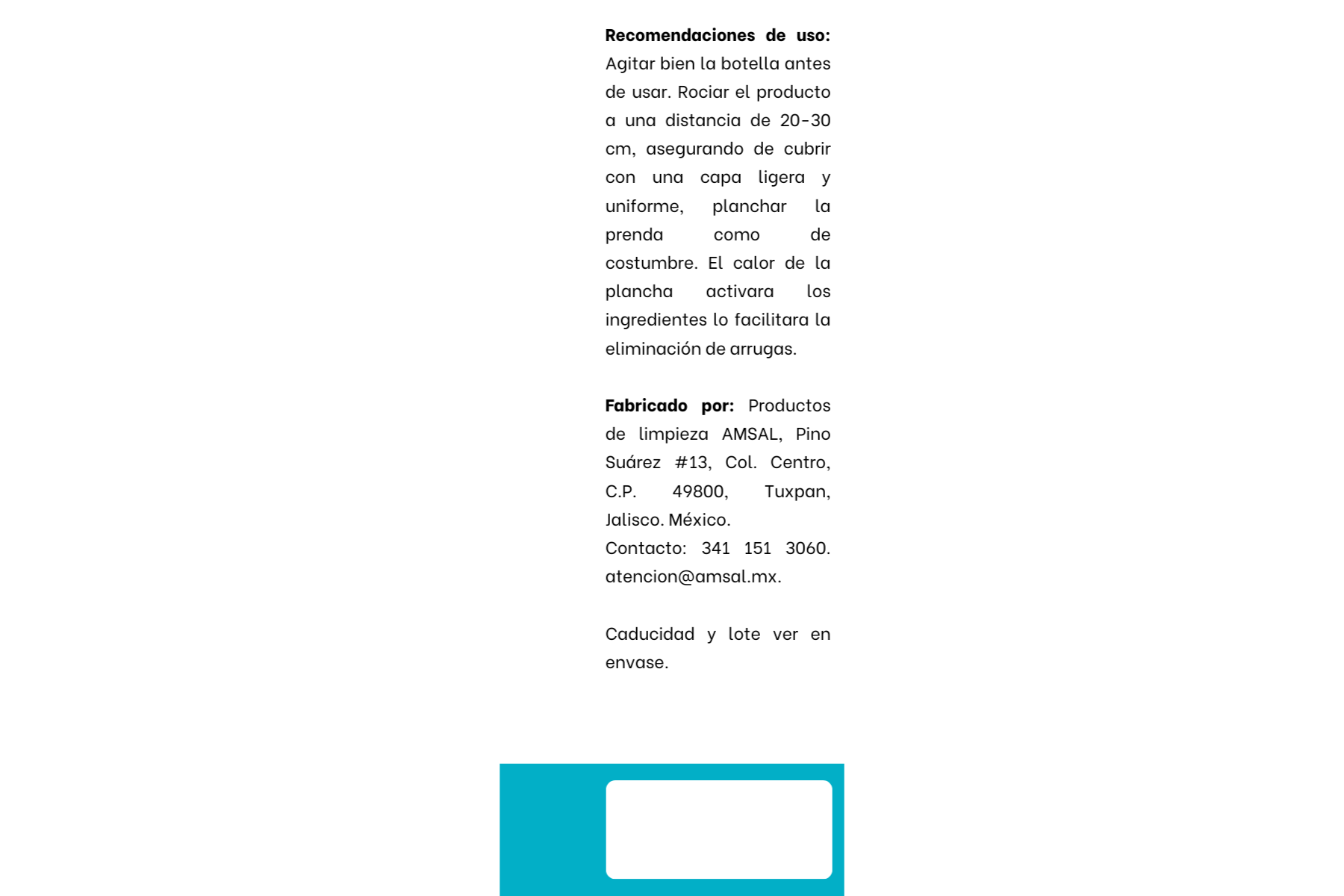 - Importante: Realizar una prueba en una pequeña área oculta de la prenda si usas el producto por primera vez.