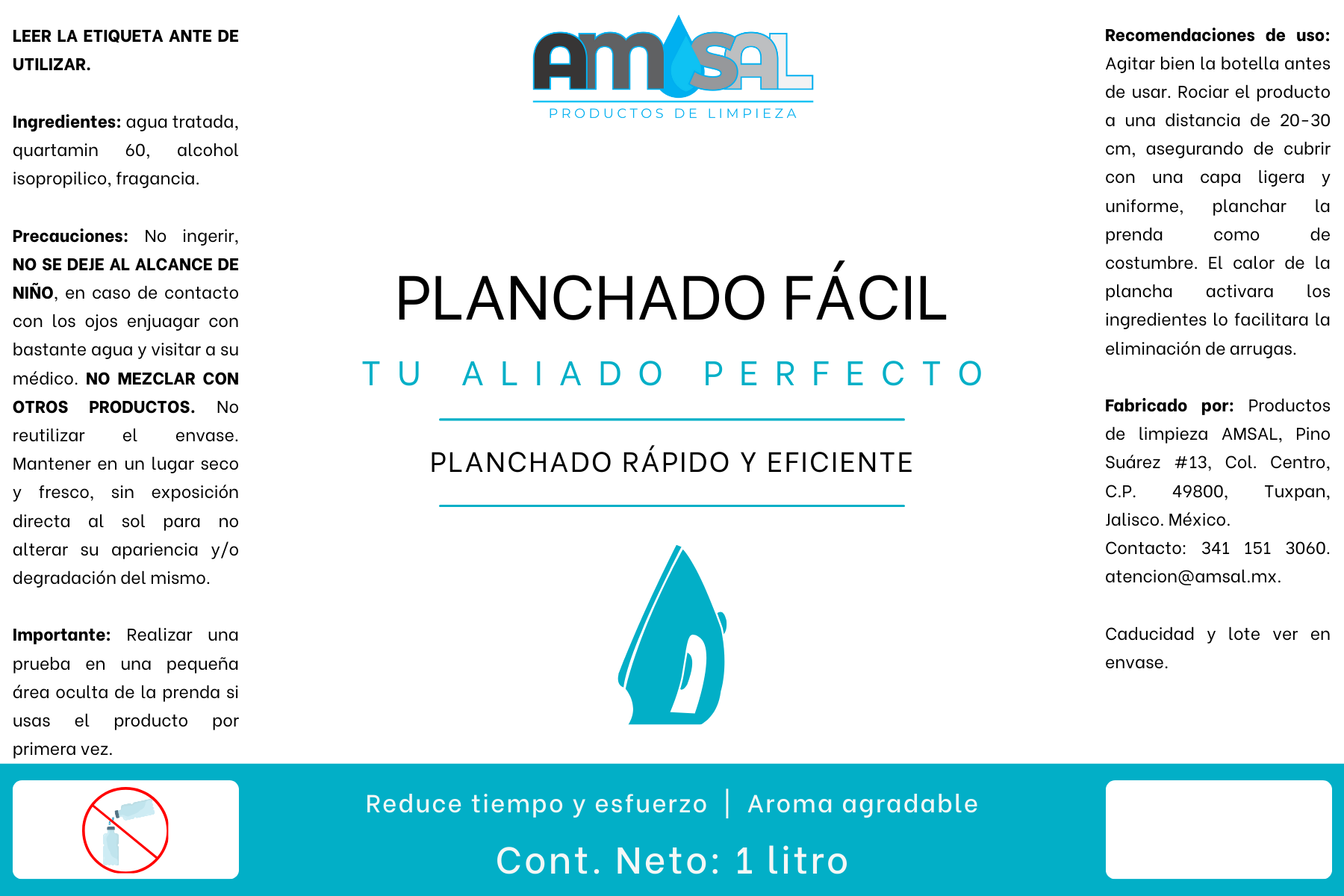 - Agitar bien la botella antes de usar. Rociar el producto a una distancia de 20-30 cm, asegurando de cubrir con una capa ligera y uniforme, planchar la prenda como de costumbre. El calor de la plancha activara los ingredientes lo facilitara la eliminación de arrugas.
