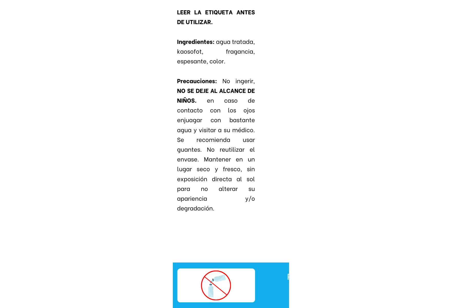 - No mezclar con otros productos de limpieza ya que se pueden producir gases tóxicos.